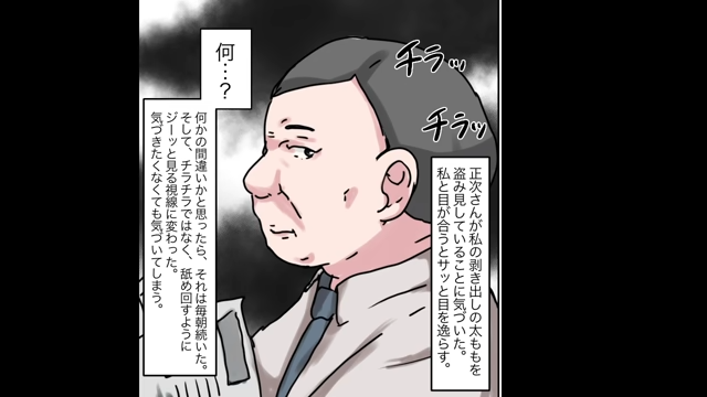 新しい父親は、主人公の体を不自然に覗き見るようになります。