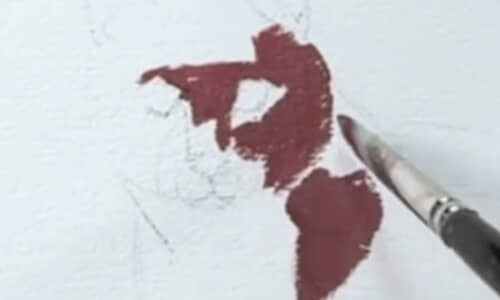 シンプルな下描きに色をのせていく柴崎さん。「まずは日陰の部分から」ということで、濃いめのブラウンに暗めの紫色なども足していきます。
