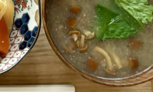 ゆうさんが用意したのは、なめこのみそ汁と肉じゃが、真っ赤なタコさんウインナーを添えた玉子焼きといった、定番の和食メニューです。ご飯は四角く切ったのり4枚の上に少量ずつ配置し、それぞれ納豆、しらす、昆布、たらこがのっています。自身でのりを巻いて“ひとくちおにぎり”を作って食べるスタイルのようですね。こんなオシャレな白米の置き方、見たことない……!