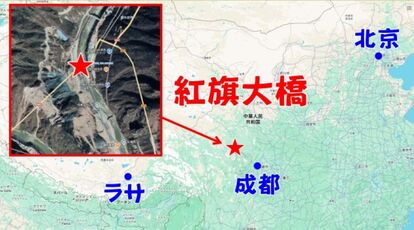 317号線は成都からチベット自治区のナクチュ市を結んでおり、紅旗大橋は双江口水力発電所のダム湖をまたぐ橋として、2025年1月に完成した。
