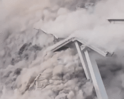 まずは橋が土砂崩れに巻き込まれる瞬間の、衝撃の映像を見てみよう。