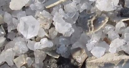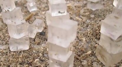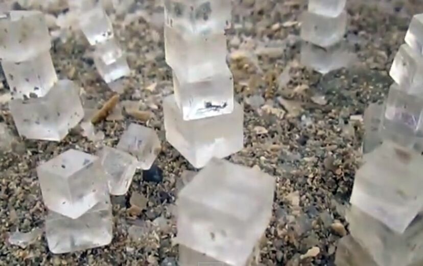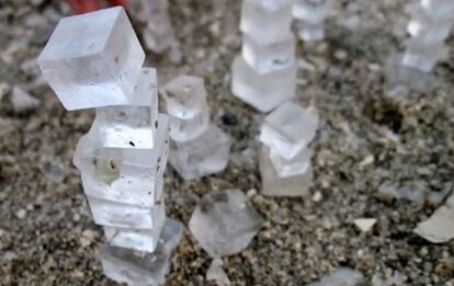 アラビア半島北西部に位置する死海の湖水は塩分濃度が約30%と、通常の海水塩度の10倍と、魚すら生息できないことで知られているが、その浜辺にはゴロゴロと塩の結晶が転がっているそうで、中には立方体のサイコロのような形状の結晶があるという。