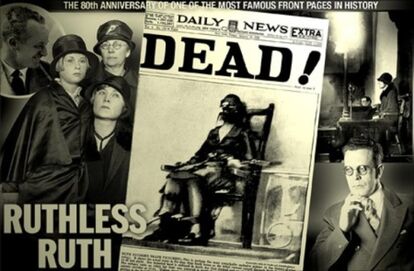 フィルムはその夜のうちにすぐに現像に回された。下のほうからのアングルで撮られた写真には、右側に看守の足が写り込んでしまっていたが、よけいな部分はカットされ、電気椅子に座るルースの姿が大きく引き伸ばされ、『死んだ!』という見出しをつけてすぐに発行された。