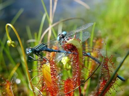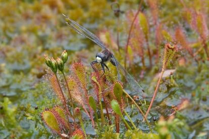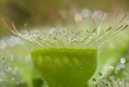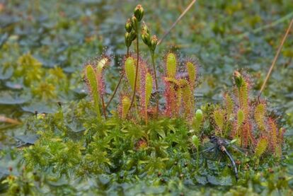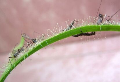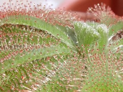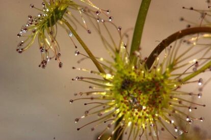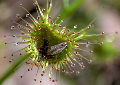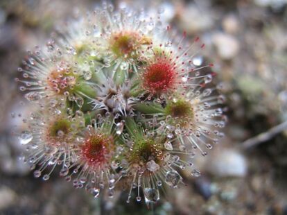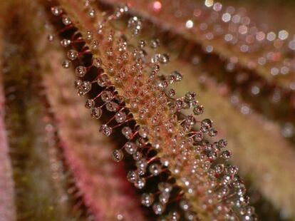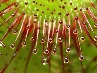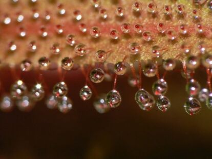 194以上の種類を有するモウセンゴケ属は、おいしいごはんを思い浮かべながら、その葉に粘液を散りばめて待ちかまえている。