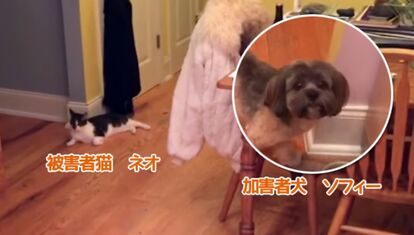 キシャ―!瞬時に猫を襲いに行った犬のソフィー