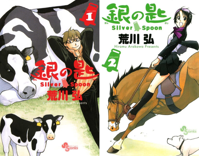 Amazon『銀の匙 Silver Spoon』まとめ買いページはこちら『銀の匙』は、マンガ『鋼の錬金術師』でも知られる荒川弘氏による農業高校を舞台にした作品だ。大自然に囲まれる大蝦夷農業高校に入学した主人公・八軒勇吾は、授業が始まるなり子牛を追いかけ迷子になったり、ニワトリの卵が肛門から生まれることを知って驚愕したりと、想定外の事態に戸惑いながらも日々を送っていく。