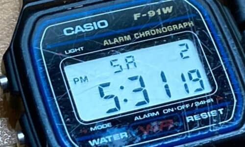 注目を集めているのは「F-91W」という腕時計。国産メーカー「カシオ」が手掛ける低価格で高品質な製品シリーズです。薄く軽量な本体はとてもタフに作られていて、愛好家の間では「コスパ最強」と評され、さまざまな伝説が語り残されており、発売された1989年から現在も製造・販売が続けられているカシオを代表するベストセラー商品の1つです。