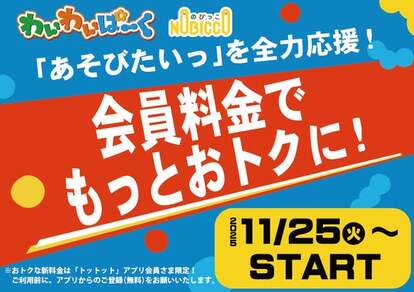 昨今の物価高騰により、ご家庭での支出への意識が高まっています。当社は、このような状況下においても、子どもたちのかけがえのない「あそび」の機会を守り、「あそびたいっ」という純粋な気持ちを我慢させてはならない、その想いから今回の「利用料金の一斉値下げ」と「会員料金の導入」を決定いたしました。