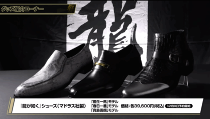 グッズ情報コーナーでは、『龍が如く』シリーズの桐生一馬、春日一番、真島吾朗をイメージした革靴も発表された。