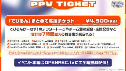 「でびるんげーむす!Supported by Cygames」のアフタートークやチーム別決起会・応援配信など合計約 7 時間越えの舞台裏が見られるペイ・パー・ビュー(以下、 PPV)チケットを販売開始しました。