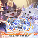 バーチャルライバーグループ「にじさんじ」所属 VTuber「でびでび・でびる」と「ルンルン」がチームを率い、Cygames のゲームタイトルを舞台にチーム対抗戦を繰り広げるオンラインイベント「でびるんげーむす!Supported by Cygames」の開催が 2025 年 12 月 7 日(日)に決定しました。本イベントは、株式会社OPENREC が主催、株式会社 Cygames および ANYCOLOR 株式会社の協力のもと開催され、OPENREC.tv、YouTube にて配信を予定しています。