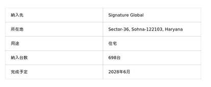 当社の重要なお客さまであるシグネチャー・グローバル様より、このような歴史的な大型受注をいただき、大変光栄に思います。これは当社の製品とサービスに対する信頼の証であり、インド市場への我々のコミットメントを反映するものです。現在進めている生産能力の増強とあわせ、今後もインドの都市発展と快適な生活環境の構築に貢献してまいります。