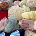 余っていた糸は多種多様。色も質感も異なるものばかりです。そこにセリアの毛糸を追加。使用するかぎ針は7号です。