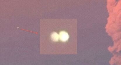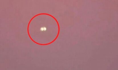 この映像が撮影されたのは4月22日で、二つ並んでいるように見える未確認飛行物体は、灰に満たされた空を背景に点滅し、数秒間空中でホバリングしたのち消えていった。