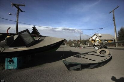 火山灰が降り注いだ周辺の町の写真が公開されたが、まるで灰の海のような状態となっている。