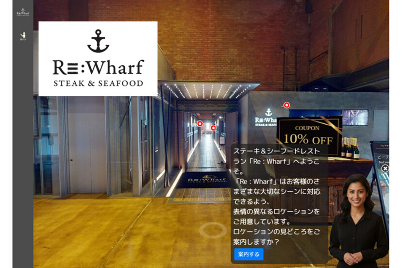 利用者は、3D空間上で実際に来店したような直感的な体験(空間、食事、景観、店舗独自の演出体験など)ができる。今回の実証実験は、リアル店舗への来訪動機の醸成効果を検証することを目的に実施するもので、バーチャル店舗へのアクセス数や滞在時間、バーチャル店舗経由でのリアル店舗への予約数などを分析し、来店意思決定への影響を検証する。