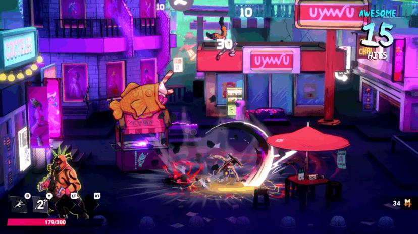 本作のゲーム性は、ベルトスクロールのレトロな2.5Dアーケードゲームに、ローグライク要素が融合したものとなっている。プレイヤーは、「ロバ道」と呼ばれるスキルツリーで戦闘スタイルをカスタマイズし、さまざまビルドやコンボを試しながら、“下品で派手な”アクションを決めていく。