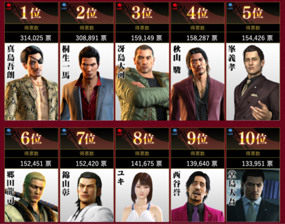 いま考えても、龍司(郷田龍司)と錦(錦山 彰)より上位は流石にヤバい。