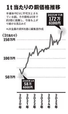 「世界的な金属価格の高騰が大きな要因です。特に銅は近年、半導体やリチウムイオン電池に欠かせないため『新時代の石油』として需要が伸びています。