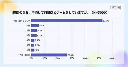また、1週間のうち「毎日ゲームをする」ユーザーが約55%にのぼり、ゲームが日常の一部として定着していることが明らかになりました。