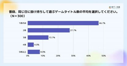 同日に掛け持ちして遊ぶゲームタイトルの数は、1本のみが46.7%と最多でした。