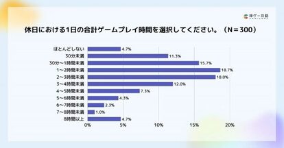 ・休日の1日あたりのプレイ時間は「1〜2時間未満」が最多で18.7%