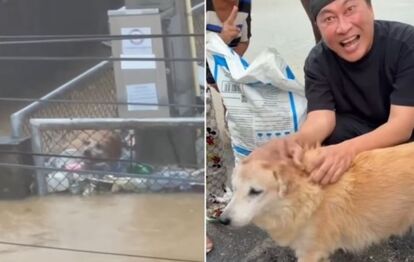 水が引いた後、プレ氏はその犬が無事であることを確認し、餌を届けた様子を投稿して話題になった。