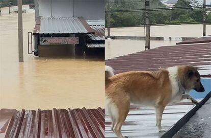 2025年11月22日、タイ南部を襲った洪水の中で、ペットの犬と猫を連れた女性が自宅の屋上に取り残され、約29時間にわたりそこから動けない状況が続いた。