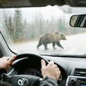 もう少し近い距離でクマに出会ってしまった場合は、クルマを緩やかに止め、すべての窓をしっかりと閉めて、クルマから決して降りないこと。写真を撮りたい、もっと近くで見たいといった好奇心はもってのほか。エンジンをかけたまま停車して、クマが立ち去るのを待つしかない。