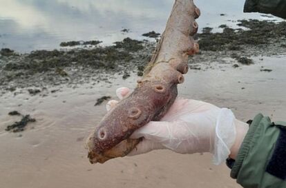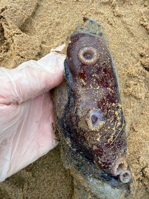 11月30日、海岸を散歩していた地元の住民が、波に打ち寄せられていた奇妙な漂着物を見つけ、保護区の職員に連絡した。