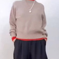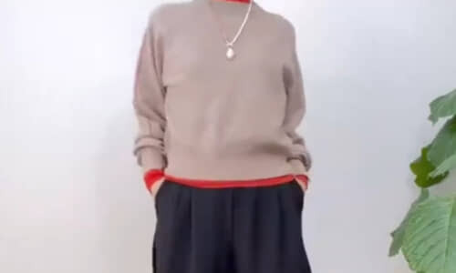まずはこちらのセーターに、ユニクロCの「キュロット/XSサイズ」(2990円/値下げ価格)を合わせました。ちなみに、めーちさんは身長約151センチ/約41キロで、骨格タイプはウェーブです。