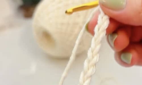 まずは、かぎ針でひたすら毛糸を鎖編みにしていきます。長い1本の鎖編みをつなげていくだけなので、編み物が苦手な人でも挑戦しやすいですね。