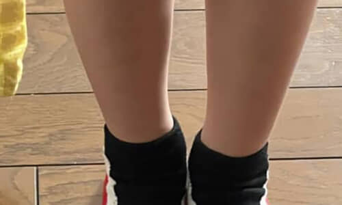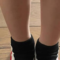 なんと、履いているのは「上履き柄のソックス」です。白い上履きとつま先部分の赤いゴム、黒い靴下のすべてが柄として編み込まれています。こ、こ、これは……かわいいし、異論もなし!