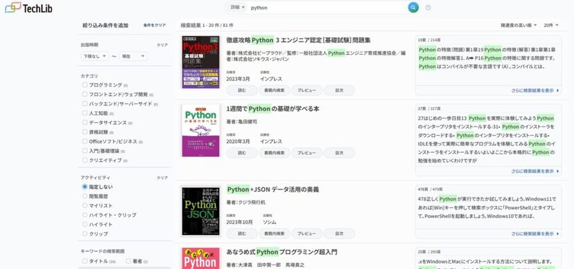 「TechLib」は、月額3080円(税込)でサービス中だ。10日間の無料トライアルも用意されている。