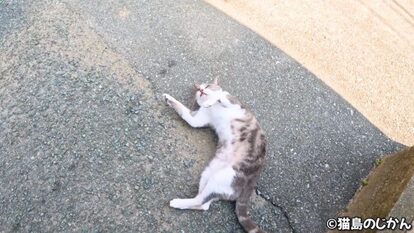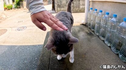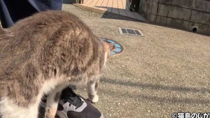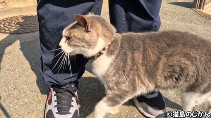 その後は「ニャ~ン」と鳴いてから猫島のじかんさんの足へスリスリ。マイペースさと人懐っこさが絶妙な猫ちゃんです。