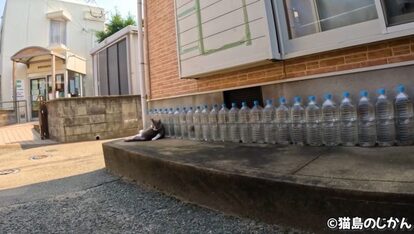 ズラリとペットボトルの並んでいる家を見つけた投稿者の猫島のじかんさん。