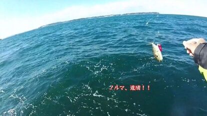 波が荒いとフワフワ誘った後の止めが安定しないとのこと。エサを獲られてもわからないほどだとか。ただ、活性自体は高く周りの人たちがどんどん釣っています。そんな中、何かが掛かった手応えが。そこそこのしなりと、途中から抵抗しなくなるのがカワハギっぽいとのこと。