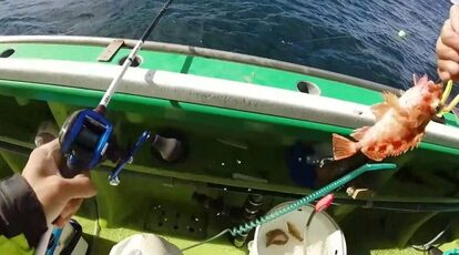 船長があちこちのポイントを回ってくれるため、荒れた海でもアタリがそこそこ続きます。リールを巻くのが軽いと感じていると、定番ゲストだというトラギスが釣れました。