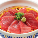 天然の本まぐろの赤身をごはんの上に盛り付けた丼です。まぐろの下には、こだわり卵を使った錦糸卵を敷いており、錦糸卵の程よい甘さがまぐろ本来の凝縮された旨みを引き立てるといいます。