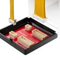 水やほこりの侵入をきらう白物家電の多くは、基板を樹脂で封止し防水性能を高めるポッティングシーリング処理が施されています。また実装方式も、加工コストの低減を図るためスルーホール実装からSMTへと移行が進んでいます。モレックスのSpot-Onは、圧着端子、リセプタクルハウジング、リテーナー、ヘッダーで構成されたSMTタイプの電線対基板用コネクターシステムで、基板にハンダ接合するプラグハウジングを高背型に設計することで、ハウジング内へのポッティング材料の侵入を防止できる点が大きな特徴です。