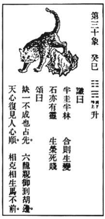 加えて、絵図には恐ろしげな虎が描かれている。この第三十象は、15世紀半ばの明王朝時代に英宗皇帝がモンゴル軍に拉致された大事件「土木の変」を予言したものとされている。確かに「半圭」「半林」で「土木」になるから、『推背図』の精度には驚かされるが、現在、再びモンゴルが中国本土深くへ攻め込む可能性は非常に低い。