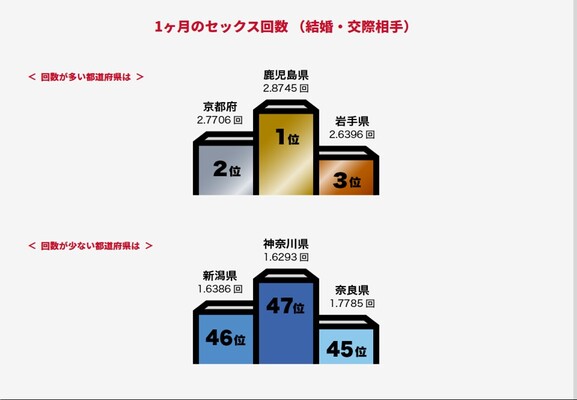 パートナーとのセックスが日本で最も多かったのは 鹿児島県である。