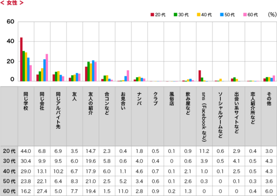 「初体験の相手とどこで知り合ったか」という質問に対し20代男性の7.3%がSNSと答えている。前回の調査では3%だったので実に4パーセント以上も増えた結果に。もはやSNSでの出会いはおろか、SNSを通じての初体験も当たり前の時代に!