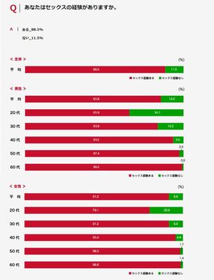 さて。というわけでこの「ニッポンのセックス2018」は、セックスの回数にはじまり、セックスを通して浮き彫りになる、若者たちの恋愛離れの現状に、未婚・既婚の性生活の意識の違いなどなど、その性質上統計の取り辛い性に関する真面目で有意義な調査となっています。