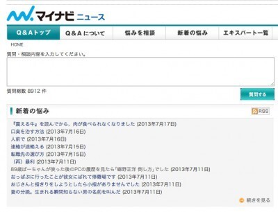 今のところ1日に寄せられる質問数は数個、総質問数も9000弱(7月17日現在)とそれほど多くありません。しかし、(本人は大変でしょうが)退屈な時間を吹き飛ばしてくれる素敵な相談がもりだくさんです。ぜひチェックしてみてください!