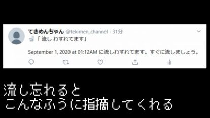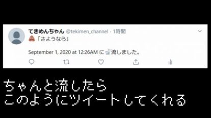 流したとき、流し忘れたとき、どちらでもツイッターにその旨が投稿されます。