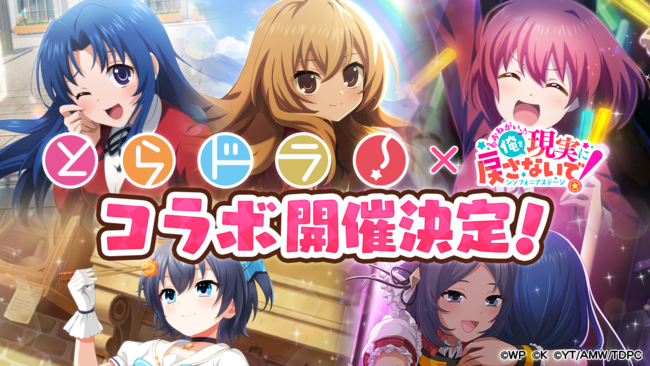 株式会社KADOKAWA(本社:東京都千代田区、代表取締役社長:松原眞樹、以下KADOKAWA)とワンダープラネット株式会社(本社:愛知県名古屋市、代表取締役社長CEO:常川友樹、以下ワンダープラネット)は、配信中のスマートフォンゲーム『おねがい、俺を現実に戻さないで! シンフォニアステージ』(略称:俺ステ)において、「俺ステ」初のコラボとなる『とらドラ!』コラボイベントの開催が決定したことを発表いたします。あわせて『とらドラ!』コラボスペシャルPVを公開。さらにコラボ開催直前ログインボーナスや公式Twitter上でのプレゼントキャンペーンを実施いたします。